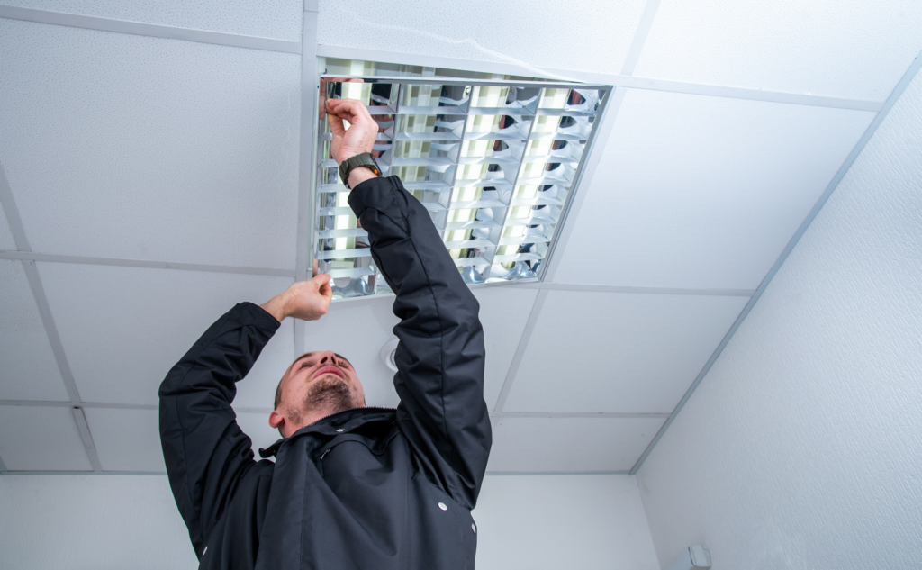 Having measured and logged the lighting consumption we set about replacing all of the fluorescent tubes with LED lighting. The 4 tube fittings in the office were all changed to 1200X600 46W LED panels and the 100W tubes in the rest of the building replaced with 36W T8 8ft LED Tubes.