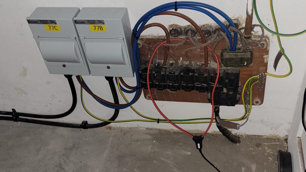 Mark’s customer owns a large town house in Richmond, London that had been converted over 50 years ago into 5 Flats. The existing 100A single phase service to the property had been split by the DNO into a 6-way single-phase supply, 5 flats and one landlord’s supply for communal areas. This installation had worked very well for the last 50+ years with no known overloading issues.