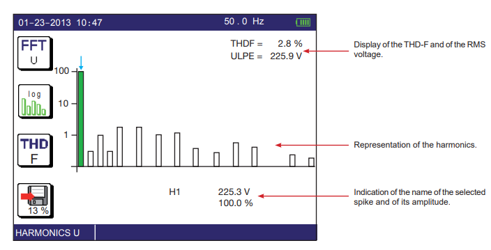 · Accurately measure and display Voltage and Current Harmonics up to the 50th