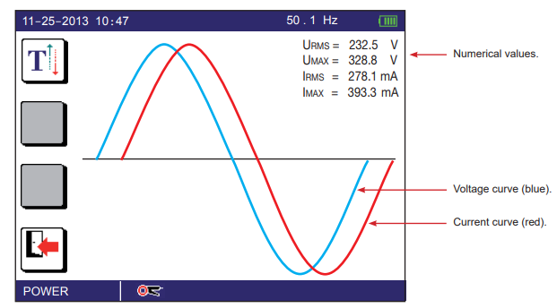 · Power Factor measured and seen on the graphical display