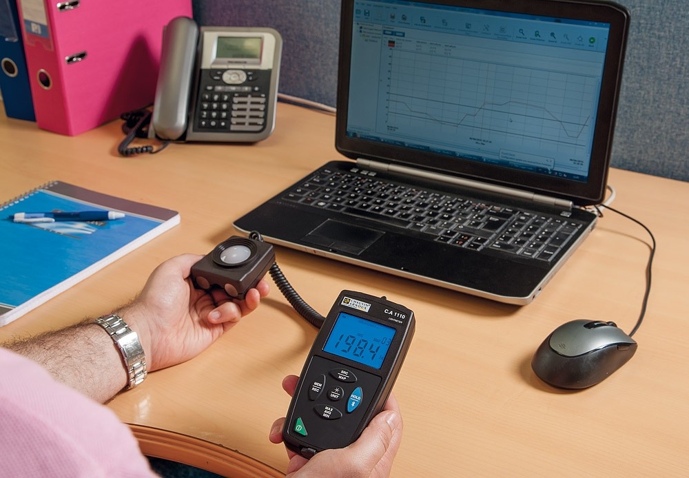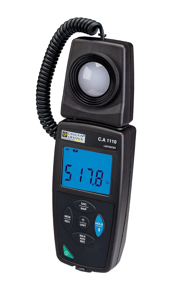The CA 1110 luxmeter (light meter) measures the illuminance of all light sources (LED, Fluo. etc.) up to 200,000 lux in compliance with Class C of the NF C 42-710 standard.