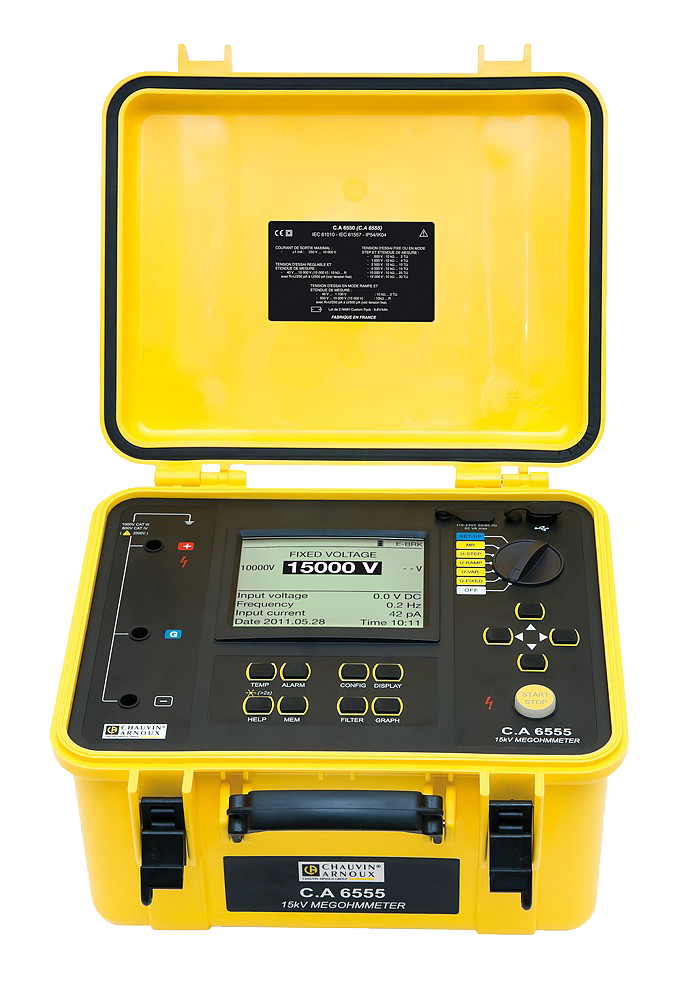 With its site-proof casing, the C.A 6555 insulation tester is used to check equipment insulation during manufacturing, on-site installation work, periodic inspections and recommissioning of installations.