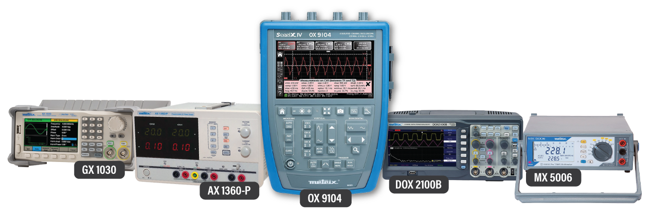 - Oscilloscope, multimeter, bus analyser with reading of files and recorded directly on the oscilloscope